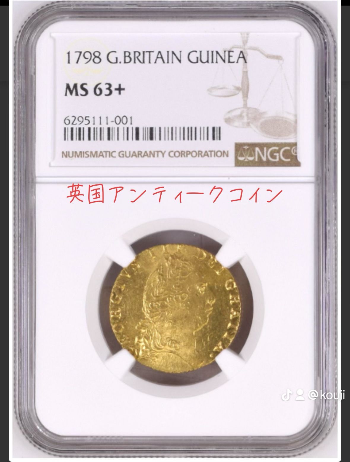 グレートブリテン 1798年 ジョージ3世 1ギニー金貨 NGC-MS63+